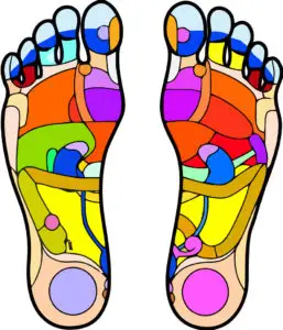 Le pied est considéré comme une projection en miniature du corps en entier, chaque partie du corps et organes ayant leurs zones de projection au niveau du pied, appelées zones réflexes.